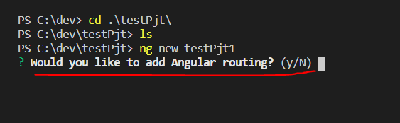 그러고 난뒤에 ng new [프로젝트명] 을 입력해주자!