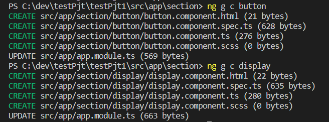 컴포넌트 만드는 방법은 만들고자하는 디렉토리로가서 ng generate component [컴포넌트명] 을 입력하면 만들어 낼 수 있다. 이게 너무 길다? ng g c [컴포넌트명] 으로 짧게도 가능하다!