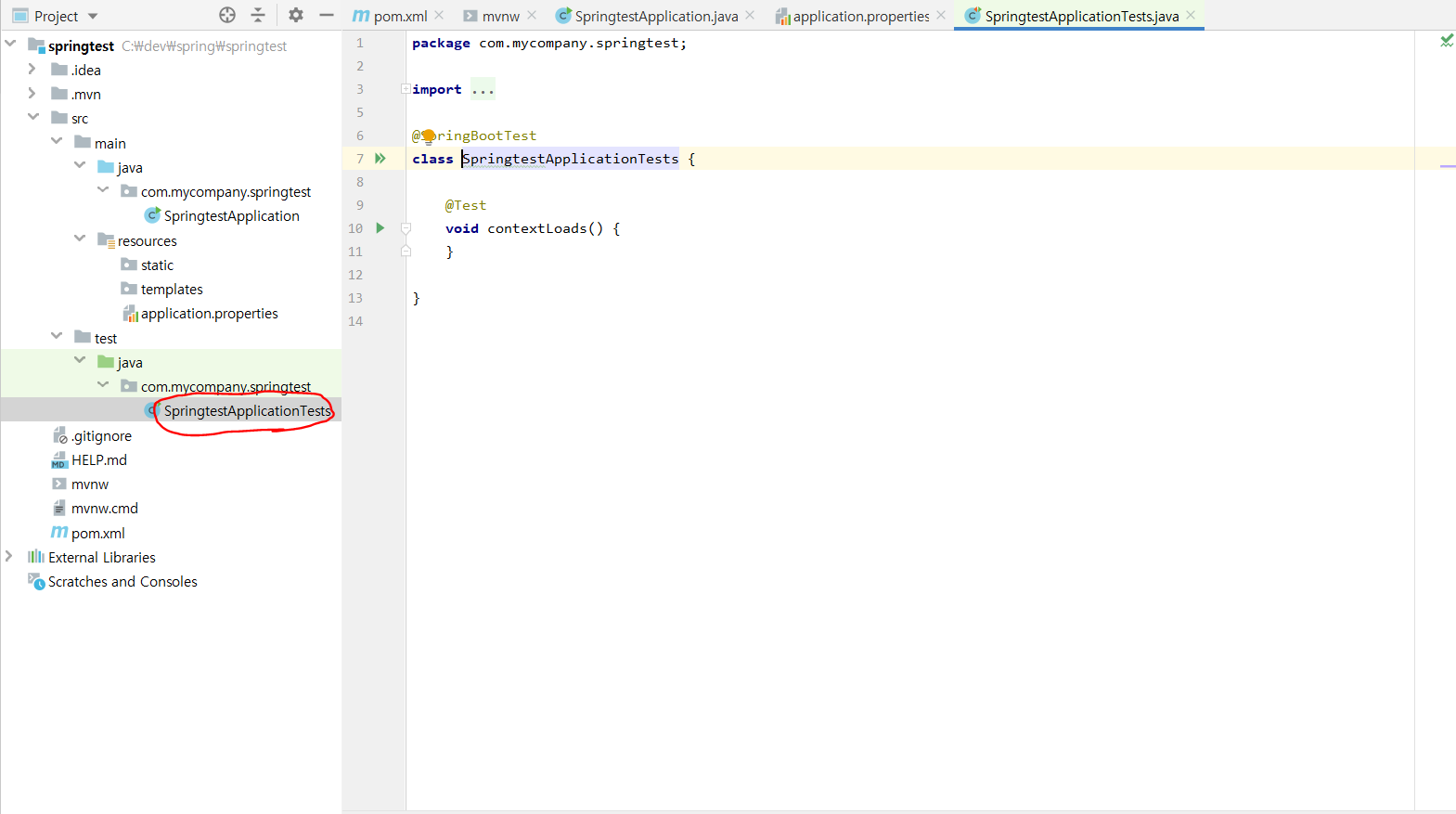 마지막으로 Junit test class 다.