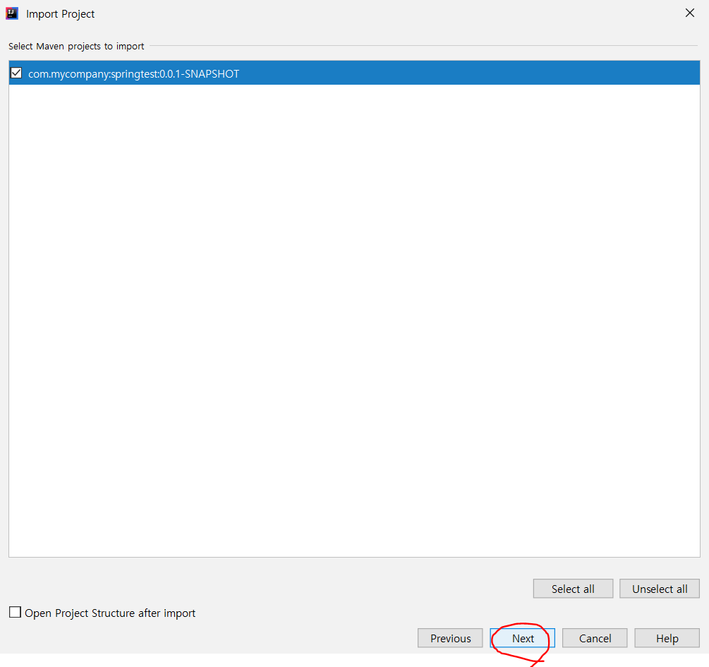 여기까지 마쳤으면 실제 Intellij IDEA에서 프로젝트를 불러와보자.