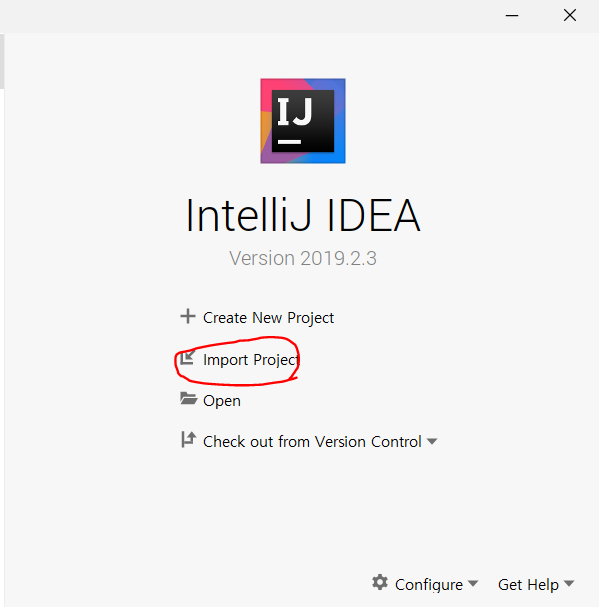 그러고 IntelliJ IDEA를 열어서 Import Project를 누르자.