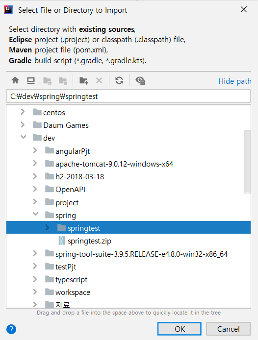 압축을 푼 디렉토리를 선택해주고 !