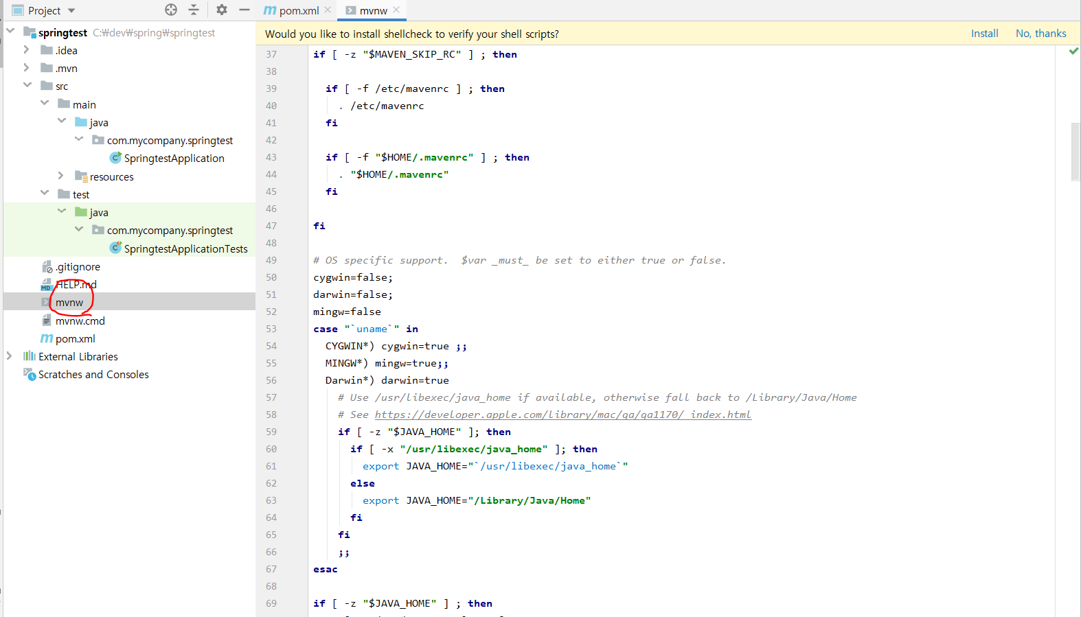 그리고 mvnw 인데 이건 mavaen wrapper 이다.