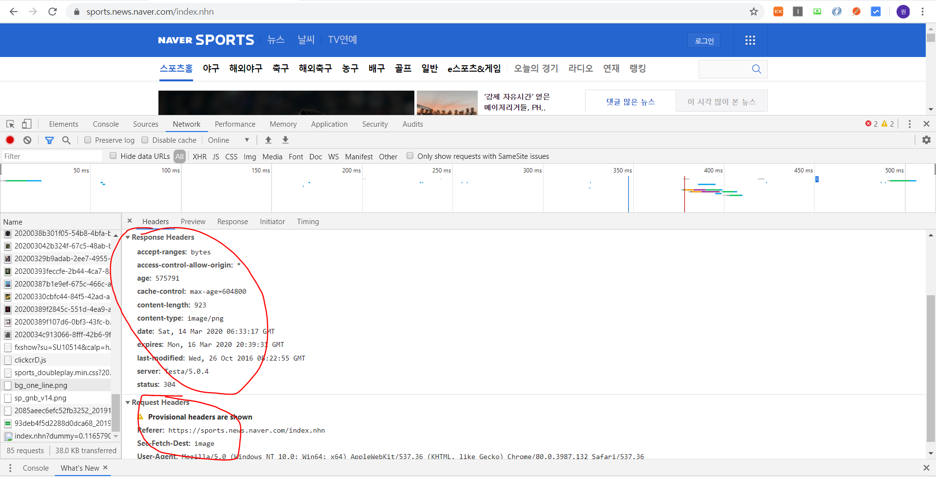 이해를 돕기 위해 , 네이버 스포츠 뉴스 url로 요청을 해봤다.