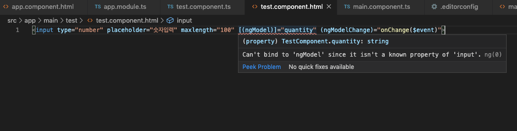 흠 .. 이게 뭘까 열심히 구글링을 해봤다. 간단한 내용이다. 모듈을 추가해주기만 하면 된다. app.module.ts를 열어보자.
