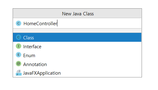 그리고 그안에 HomeController를 만들자. 보통 스프링 웹 프로젝트에서 HomeControlller는 root url을 처리하는 컨트롤러이다.