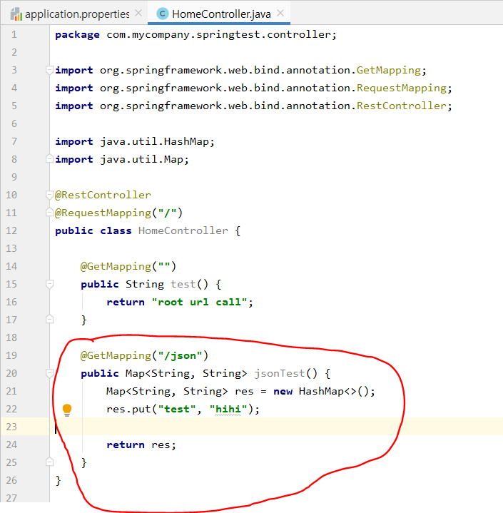 먼저 @RestController는 기본적으로 json으로 응답을 준다고 했다. 간단하게 아래 처럼 Map 을 이용해서 리턴 타입을 만들어보자.