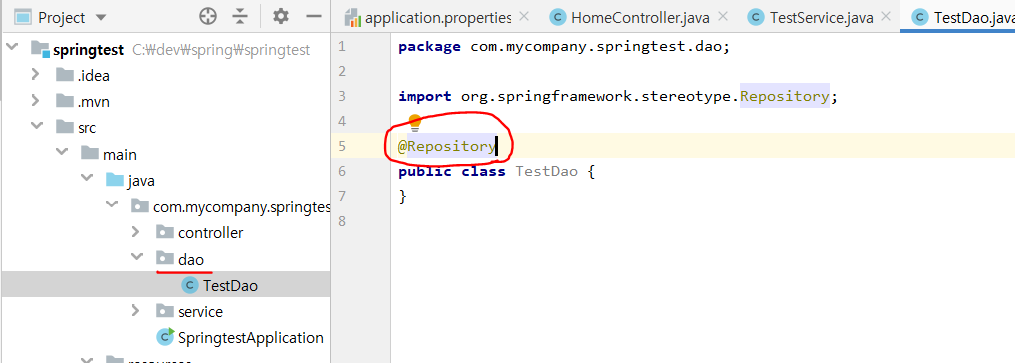 Dao는 어노테이션을 @Repository를 사용하면된다.