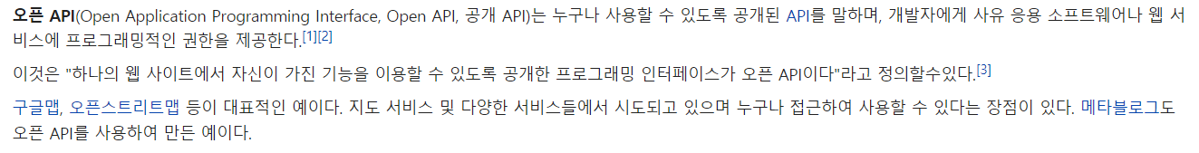 혹시 Open API 가 뭔지 잘모르는 사람을 위해, 위키백과에다가 검색을 해보았다.
