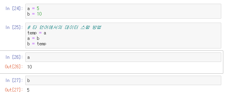 우리가 어떤 언어를 쓰던지 데이터를 스왑할 때 , 아래와 같은 방법을 썼다.