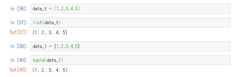 아 그리고 ~ 또하나 종종 쓰는 거는 튜플이랑 리스트랑은 서로 변경이 가능하다. ㅎㅎ
