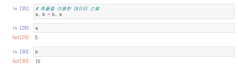 튜플의 두번째 기능 ! 데이터 스왑이다.