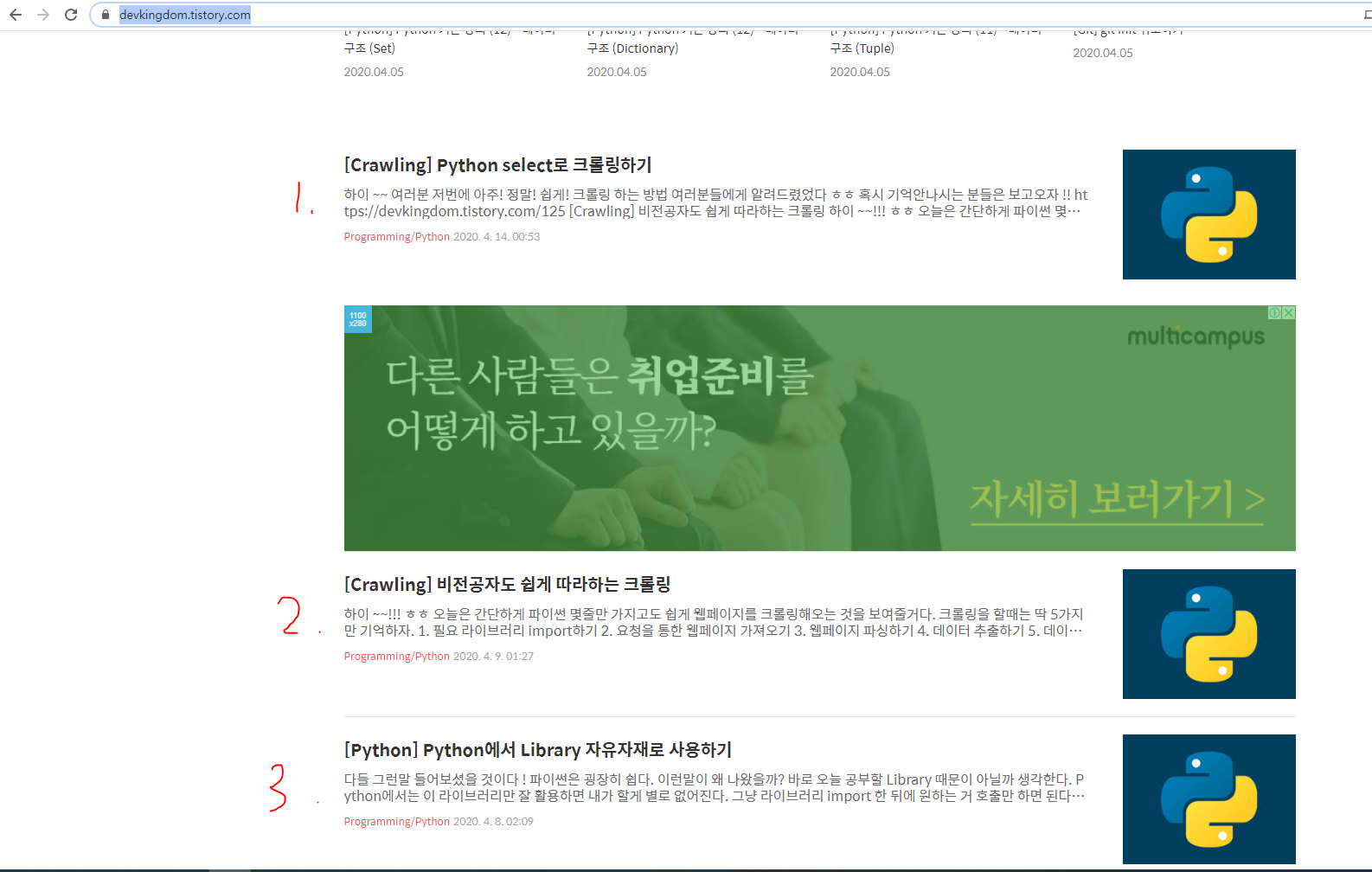 오늘 내가 크롤링해서 작업해볼 건 바로 !! 내 블로그이다. ㅎㅎㅎ