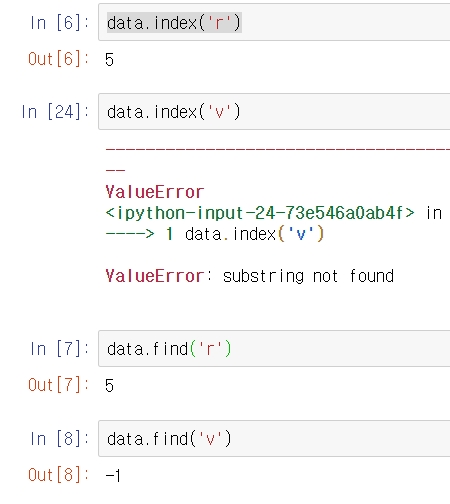 3. index & find : 가리키는 문자가 어디에 있는지 찾아주는 함수