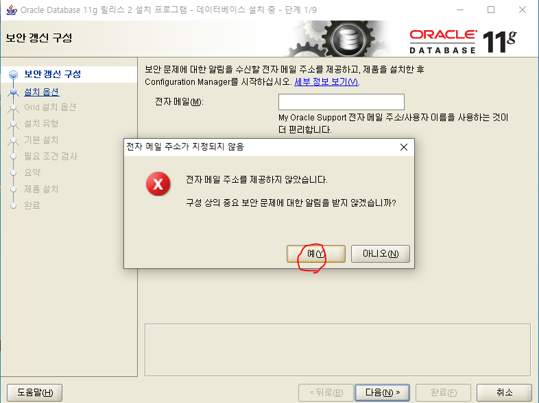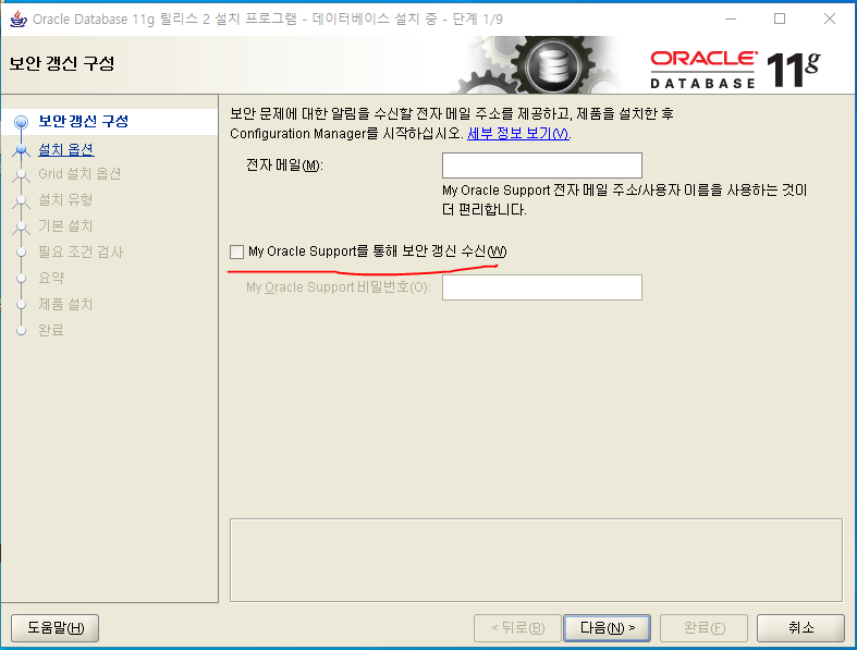 나는 보안 갱신 수신을 하지 않을꺼라 체크를 해제하고 다음 !!