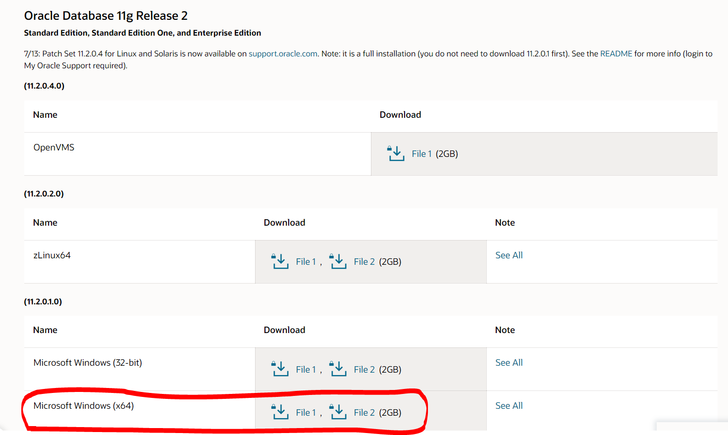 https://www.oracle.com/kr/database/technologies/oracle-database-software-downloads.html#11g