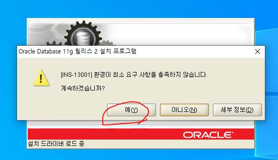 환경이 최소 요구사항을 충족하지 않았다고 하지만 그래도 "예" !!
