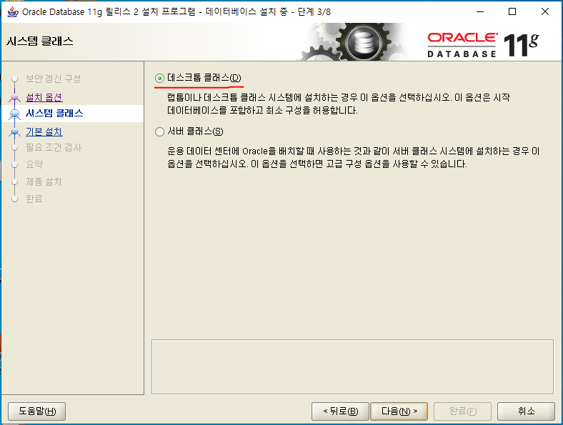 나는 따로 구축한 서버에서 사용할게 아니고 로컬에서 돌려볼거니깐 "데스크톱 클래스"로 선택하고 다음을 눌려줬다.