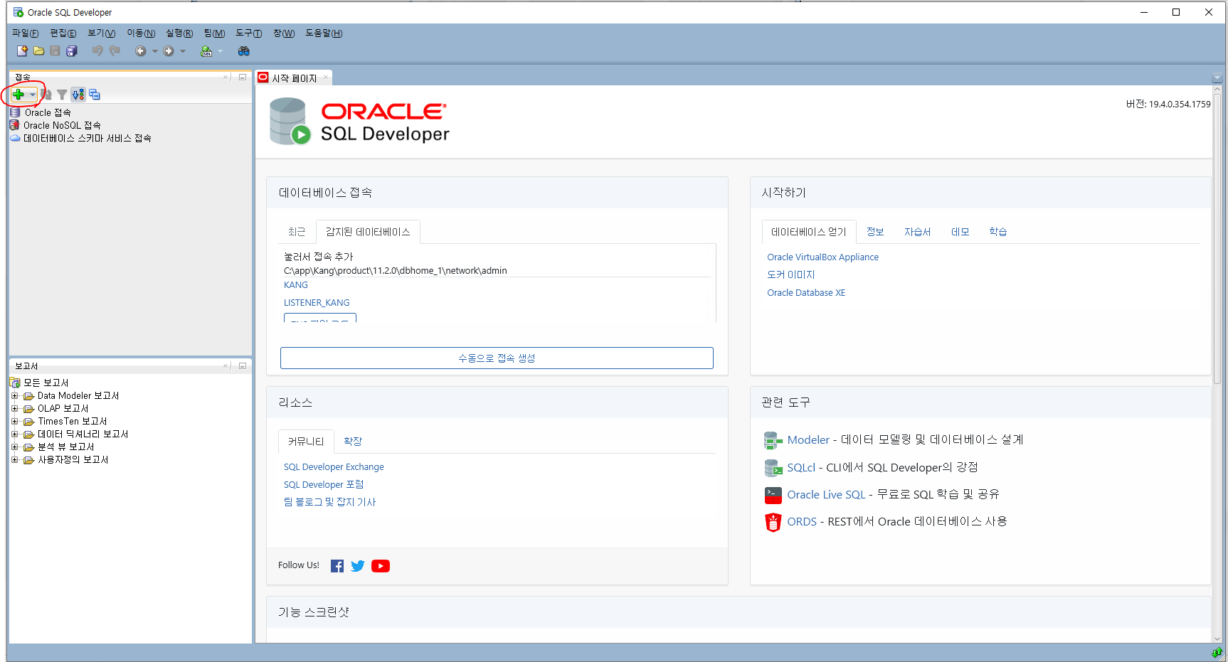 그러고 좌측에 "+" 버튼을 눌러서 데이터베이스에 접속을 해보자.