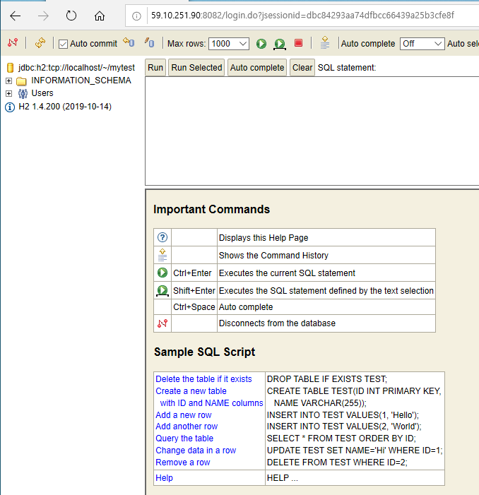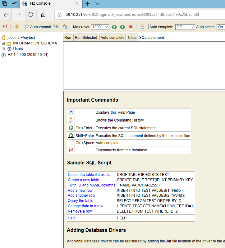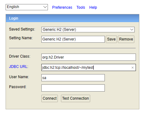다시 Generic H2(Server) 로 하고 Connect를 눌려보면..!