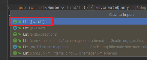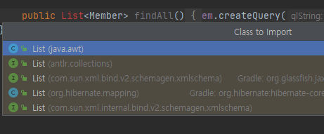 아무튼 갑자기(ㅋㅋ) java.util.List가 자동으로 import 가 안된다.