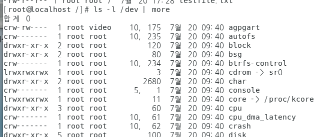ls -l /dev | more 를 실행해보면 b나 c, l 이 많이 보임