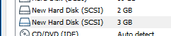 한번 따라서 실습해보자. 먼저 2GB 짜리 하드디스크 하나랑 3GB 짜리 하드디스크를 하나씩 장착 시켜주자.