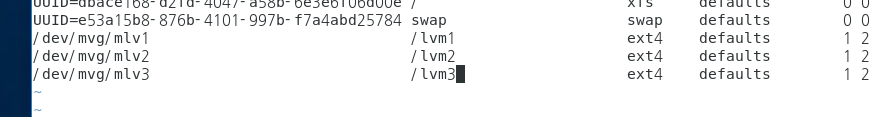 RAID 구성할때처럼 구동될때마다 자동으로 마운트되도록 /etc/fstab 파일을 열어 아래 내용을 넣어주자.