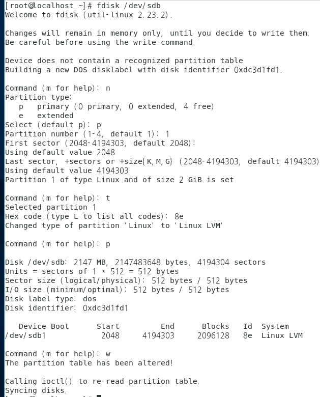 다음은 LVM을 구현하기위해 파티션을 할당해주자. 이번에는 LVM이니깐 파일시스템 유형을 8e로 잡아주면 된다.