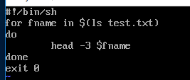 그리고 같은 디렉토리에 있는 test.txt 파일의 앞의 3줄을 출력하는 쉘스크립트를 작성했따.