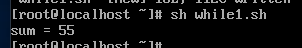 위의 문법을 바탕으로 for과 동일한 결과를 내는 1~10까지의 덧셈 프로그램을 만들어봤따.