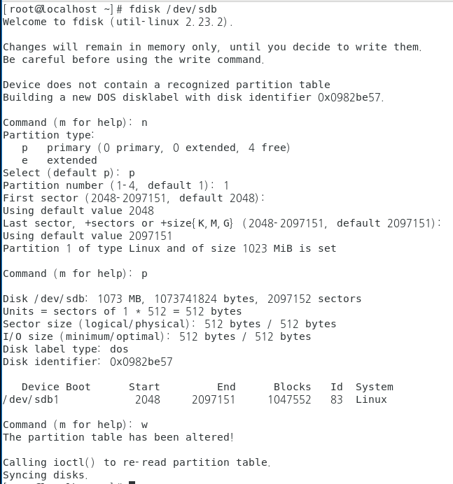 # fdisk /dev/sdb