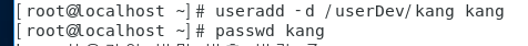 useradd -d /userDev/kang kang