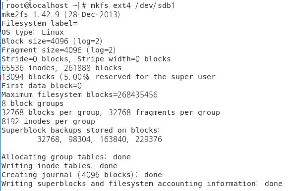# mkfs.ext4 /dev/sdb1