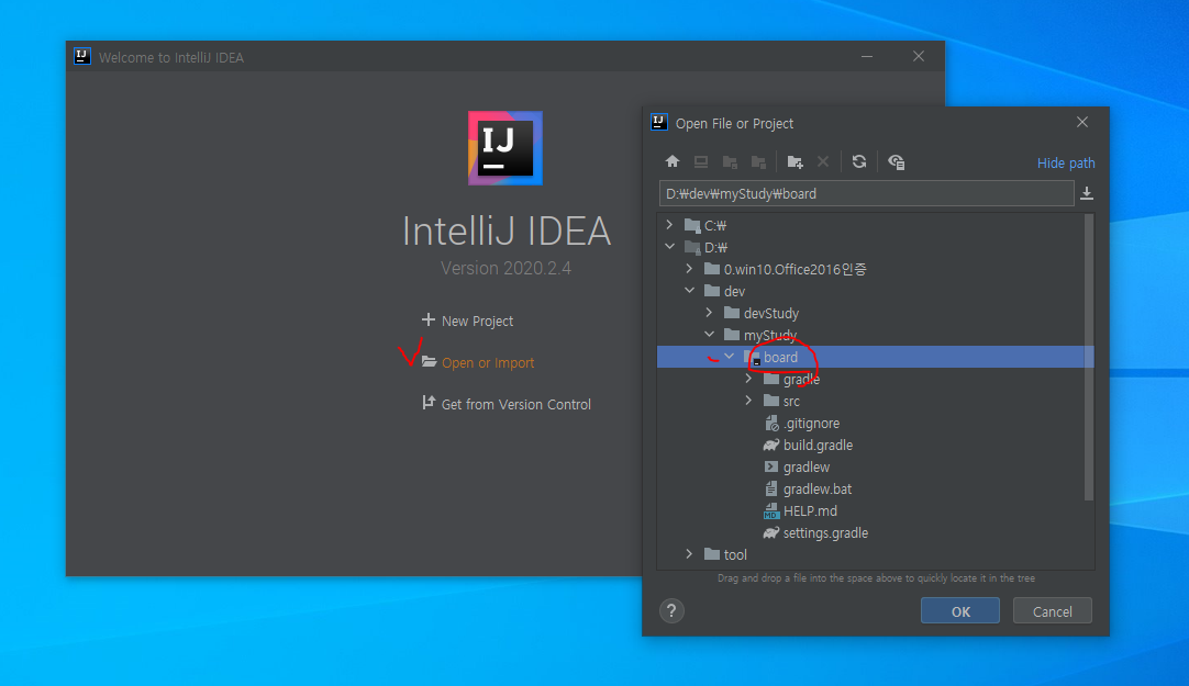 다음은 intellj에서 프로젝트를 import 시켜주면된다.