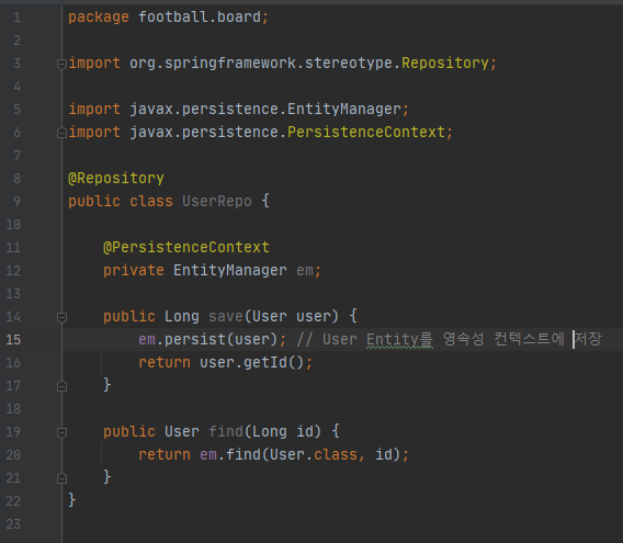 그리고 그 영속성 컨텍스트에서 데이터를 찾아서 가져오는 find 메서드를 만들거다.