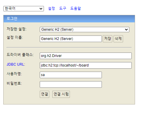 JDBC URL의 뒤에 자신이 원하는 DB명을 적어주자.