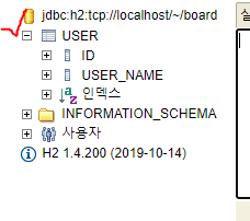 또 db를 확인해보면 USER 테이블도 생성되어 있는 것도 확인할 수 있다.