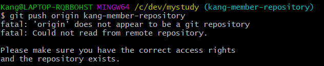 (만약에 origin 말고 다른 이름으로 연결이 되어 있으면 삭제해주고 다시 연결해줘도 된다.