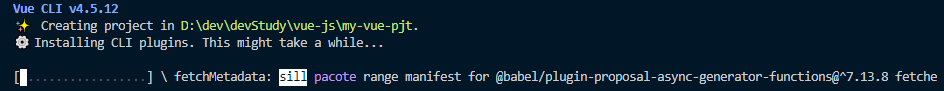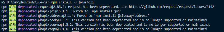 를 입력하면 vue/cli 가설치된다.