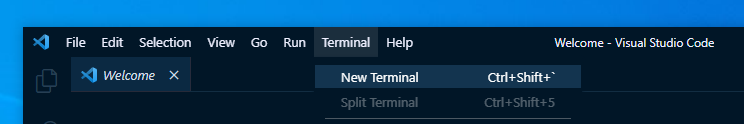 VSCode 상단 탭에 보면 Terminal 이 있는데, 여기서 New Terminal로 새 터미널 창을 열어보자.