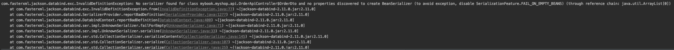 com.fasterxml.jackson.databind.exc.InvalidDefinitionException: No serializer found for class ~~~Controller$~~~Dto and no properties discovered to create BeanSerializer (to avoid exception, disable SerializationFeature.FAIL_ON_EMPTY_BEANS)