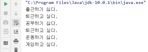println(a + "하기 싫다.");