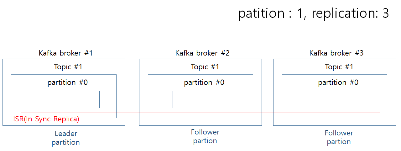 여기서 각 카프카 브로커 마다 복수의 파티션이 존재할 수 있는데, 대부분 대용량 처리 서비스에서는 파티션의 고가용성을 위해 Replicate(복제)를 한다. 즉 브로커 하나가 죽어도 복제본이 있기에 가용 가능하게 되는 것이다.