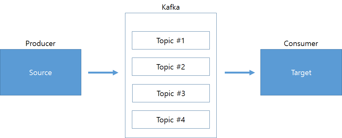 위의 그림을 보면 가운데 카프카를 기준으로 양옆에 Producer 와 Consumer 가 있다. Producer는 실시간으로 데이터를 Kafka에 보내는 놈이고, Consumer는 Kafka에 있는 데이터를 가져다 쓰는 것이라 생각하면된다. 그리고 Kafka 내부에는 Topic이라는게 있는데 각각의 목적을 가진 큐라고 생각하면된다. (더 쉽게 이해하시려면 데이터 베이스의 테이블 역할을 한다 생각하시면 된다.)