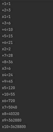 코드를 간단하게 설명 드리면 main 메서드에서 1부터 10까지 곱하는 별도의 Thread를 하나 돌리고 main 메서드에서는 1부터 10까지 더하는 로직을 또 수행한다. 이렇게 돌리면 아래와 같은 결과가 나온다.