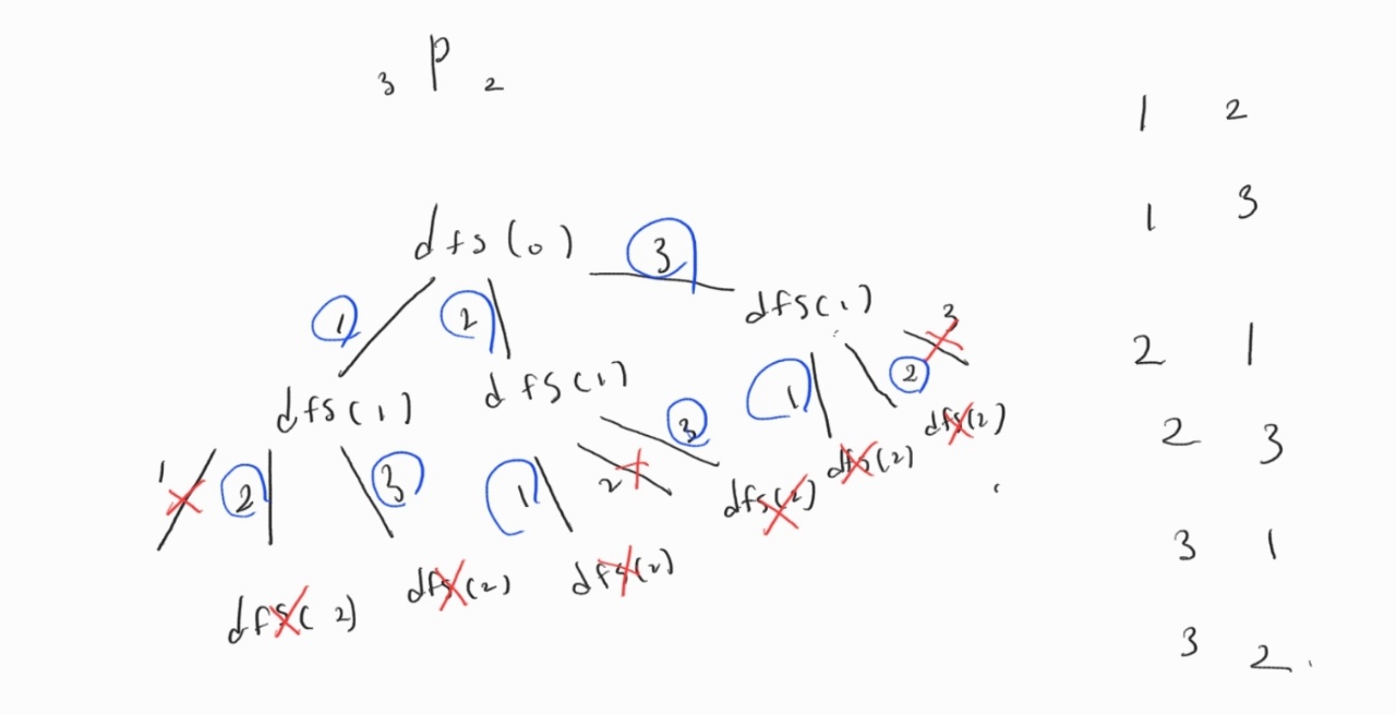 만약 n 에 3 ,r 에 2를 넣어주면, 위의 코드는 아래와 같이 동작할 것이다.