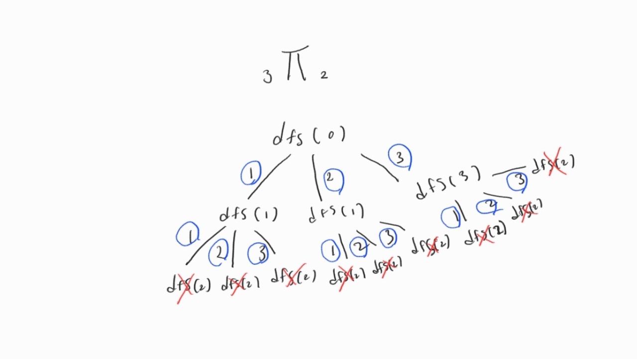 앞에서 중복순열에서 보여줬던 것과 마찬가지로 트리를 그려보면 아래와 같은 형태가 나올 것이다.