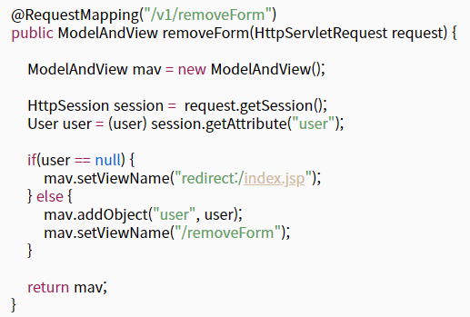 이제는 저렇게 redirect를 해줄 필요가 없게 되는거다. 왜냐 저요청이 들어오면 뭔자 session 값을 검사하고 redirect를 해주니깐 ㅎㅎ!! 그냥 아래 처럼 구현하면 된다 !