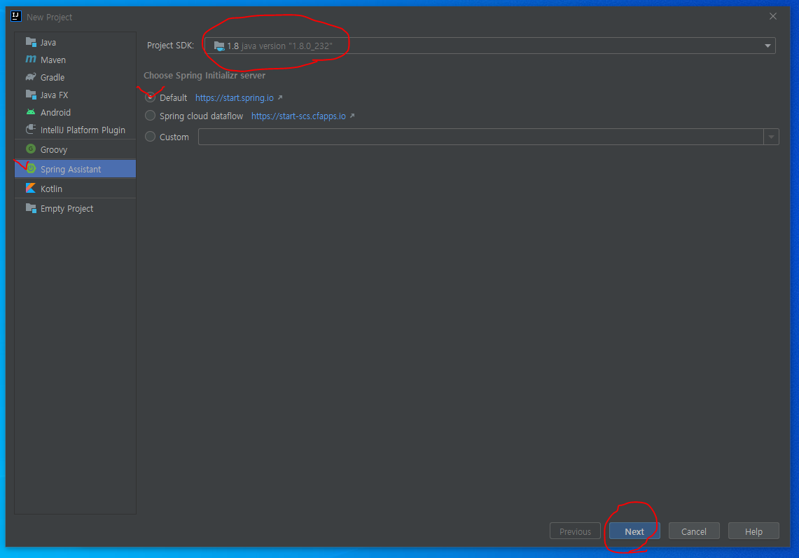이전에 내가 Spring Project를 만들때는 spring.start.io 에서 만들었었는데 intellij 에서 그냥 사이트에 접속없이 만들 수도 있다.